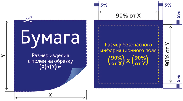 Размер безопасного информационного поля (где будет текст, логотип): (90% от Х) х (90% от Y) м;
